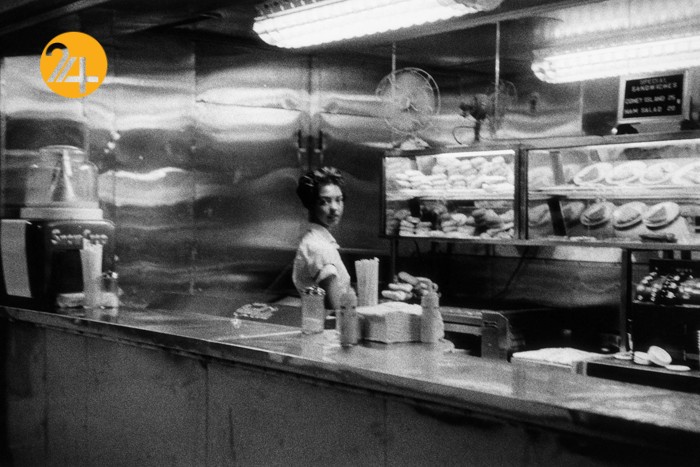 رابرت فرانک، دواخانه (drugstore)، دیترُیت، ۱۹۵۵. از کتاب «آمریکاییها».