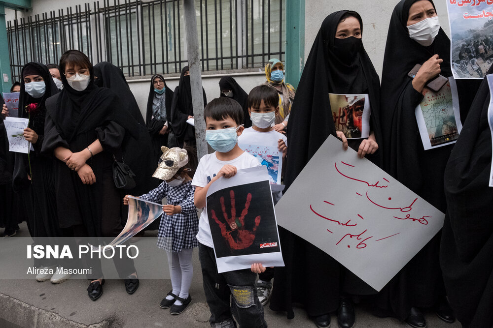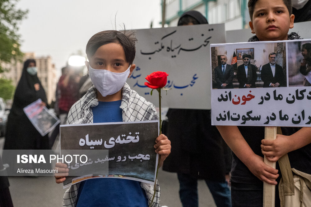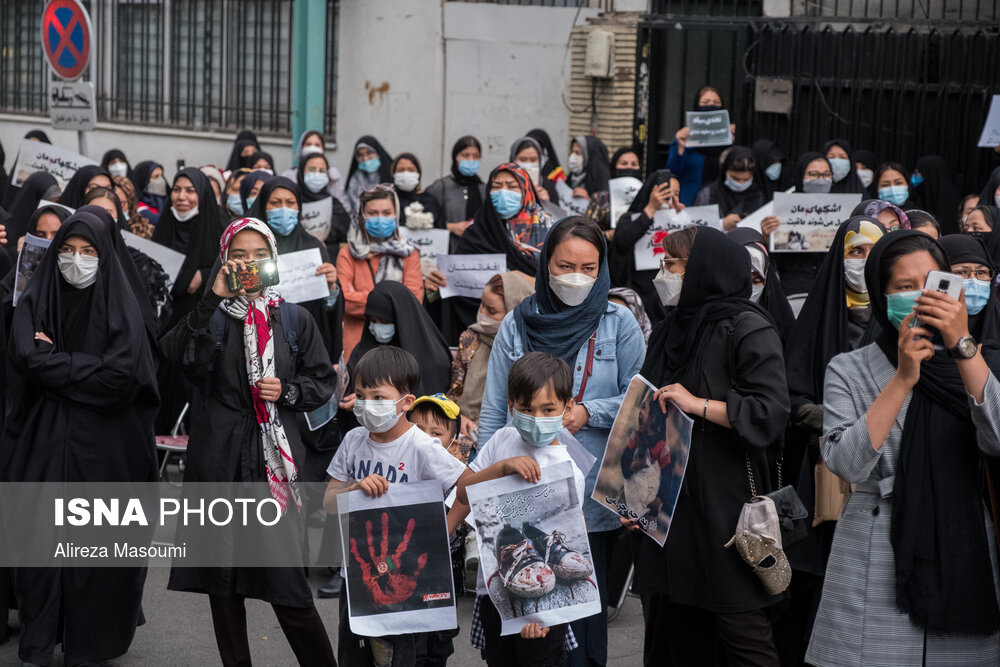 تجمع اعتراضی جمعی اتباع افغانستانی مقیم تهران در محکومیت حمله تروریستی به مدرسه سیدالشهدا کابل، ۲۱ اردیبهشت ماه در مقابل سفارت افغانستان در تهران برگزار شد. در این تجمع حاضران با شعار مرگ بر طالبان انزجار خود را از این جنایت اعلام کردند.