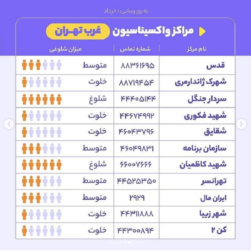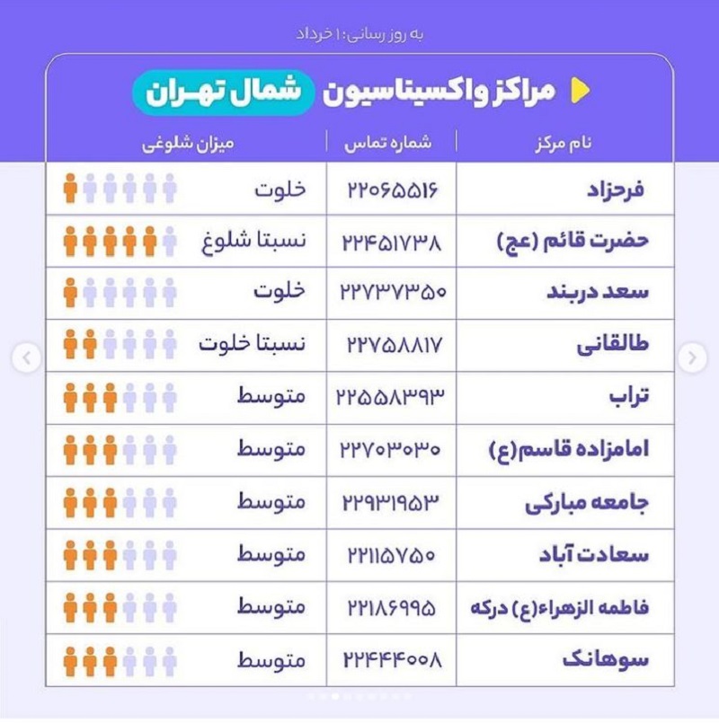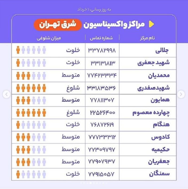 لیست مراکز واکسیناسیون/ کدام مراکز خلوتتر است؟