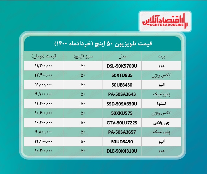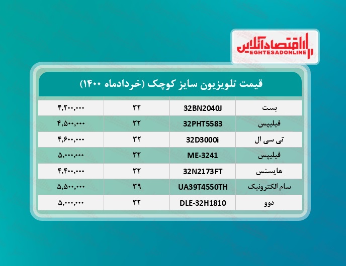 آنچه در زیر می‌آید قیمت تلویزیون‌های موجود در سطح بازار است.