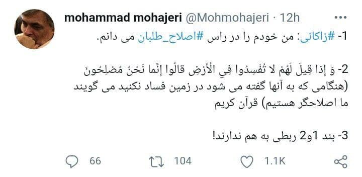 رویداد۲۴ محمد مهاجری، در توئیتی نوشت: