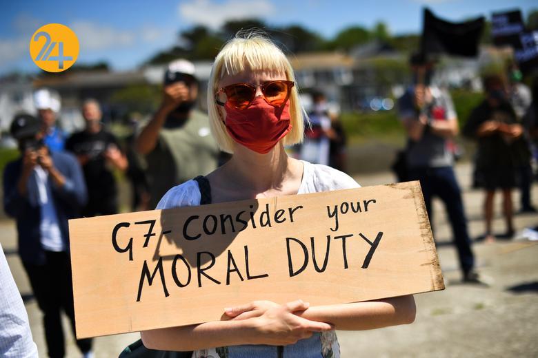 اعتراضات علیه سیاست‌های گروه هفترویداد۲۴ نشست گروه هفت از روز جمعه ۲۱ خرداد ۱۴۰۰ با حضور سران هفت کشور عضو در بریتانیا با میزبانی بوریس جانسون آغاز شد. این نشست که امروز آخرین مرحله خود را طی می‌کند بر چگونگی احیای اقتصاد جهانی، مقابله با شیوع کرونا، و تغییرات اقلیمی تمرکز دارد.
