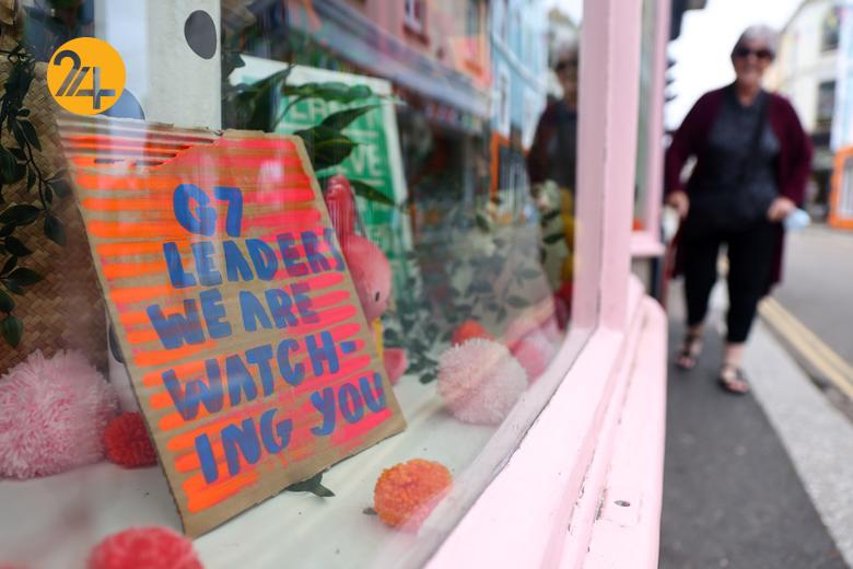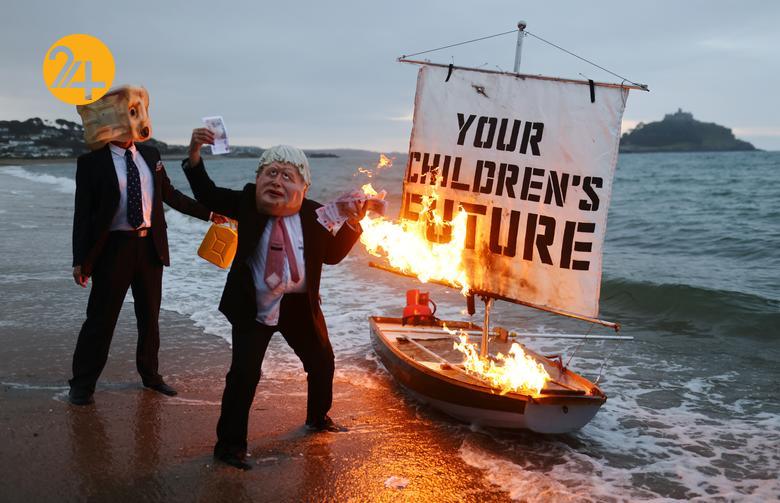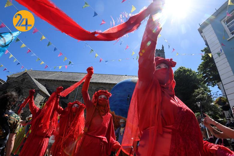 گروه معترض "بحران را خرد کن" معتقد است شرایط آب و هوایی و اجتماعی کره زمین در وضعیت اضطراری قرار دارد، به این منظور باید در جهت گیری کلی قدرت‌های جهانی تغییر ایجاد شود. در تصاویر روز عکس‌هایی از معترضان در شهر کورنوال انگلستان که محل برگزاری این نشست است را ببینید.