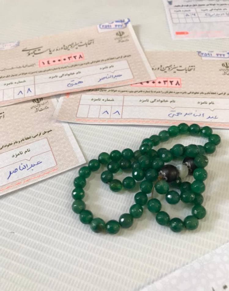 ۴)برگ رای اسامی "ناصر" ، "ناسر"، " عبدالناصر"، "عبدالناسر"، "همتی"، "حمتی" به نام اقای عبدالناصر همتی خوانده می شود.