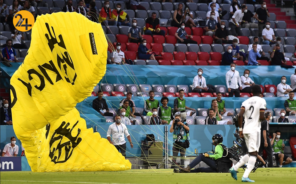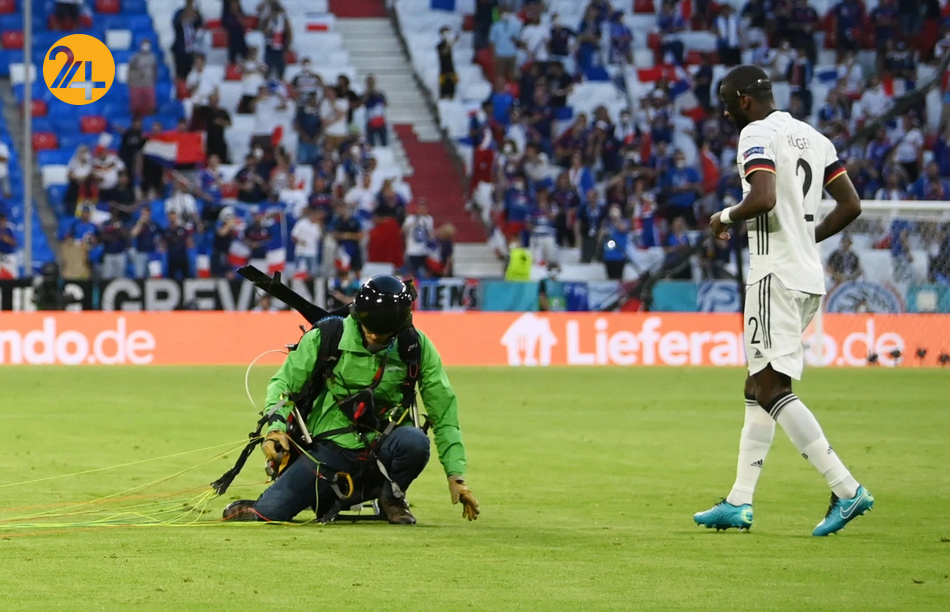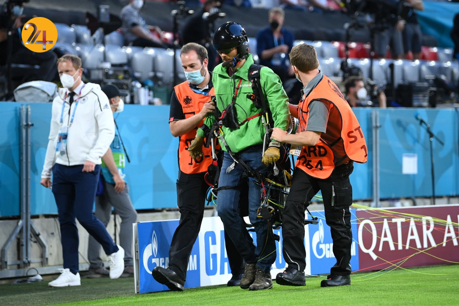 یک پاراگلایدر سوار در جریان دیدار تیمهای ملی فوتبال فرانسه و آلمان در جام ملتهای اروپا در ورزشگاه آلیانس آره نای شهر مونیخ سقوط کرد.