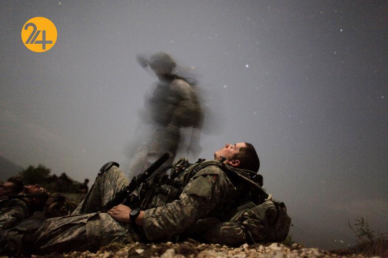 آگوست 2009، سرباز آمریکایی در حال استراحت کردن در ولایت کنر افغانستان