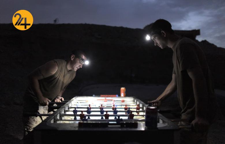 آگوست 2009 سربازان ارتش آمریکا در ولایت قندهار درحال بازی فوتبال دستی در حالیکه در پست نظامی خود در ولایت قندهار کشیک می‌دهند