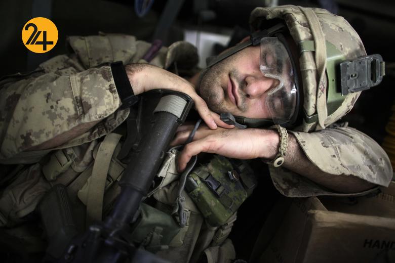 ماه مه 2009 سرباز کانادایی در حال استراحت پس از عملیاتی بی‌وقفه در قندهار