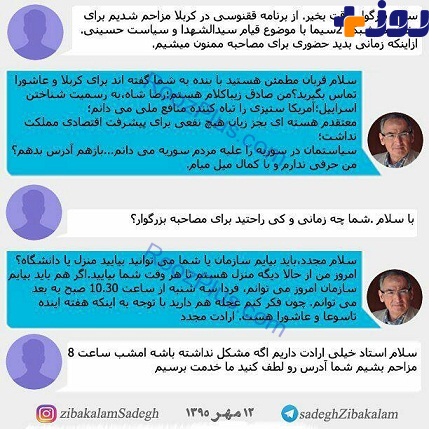 اسكرين شات اس ام اس بازي صادق زيبا كلام با صدا و سيما