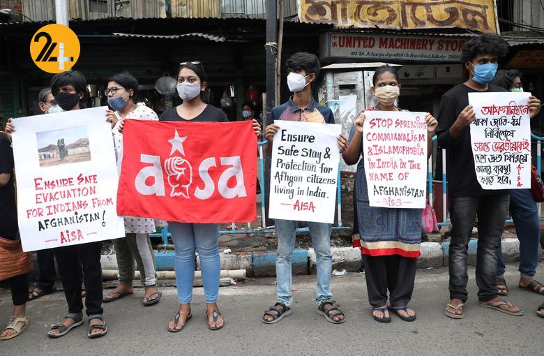 تجمع داشجویان هندی در شهر کلکته به نشانه براز همبستگی با مردم افغانستان