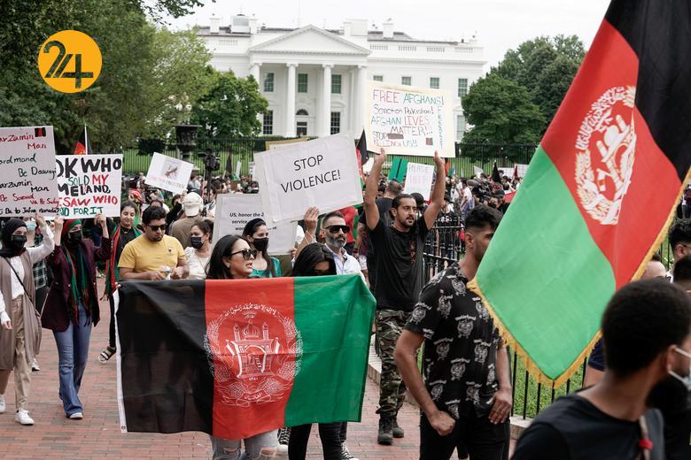 تجمع معترضان مقابل کاخ سفید در واشنگتن در روز ۱۵ آگوست ۲۰۲۱، روزی که گروه تروریستی طالبان وارد کابل، پایتخت افغانستان شدند