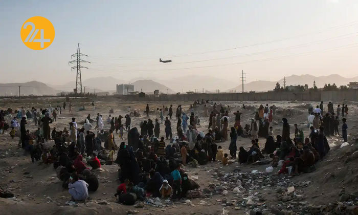 روز ۲۴ آگوست ۲۰۲۱ شهروندان افغانستان در بخش شمال غربی فرودگاه کابل در انتظار هواپیما‌های آمریکایی