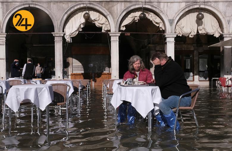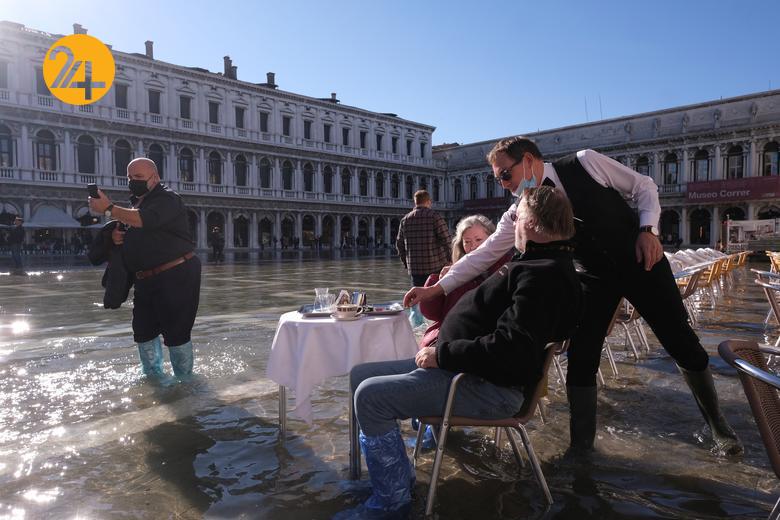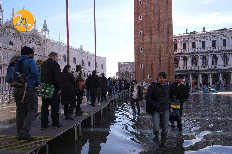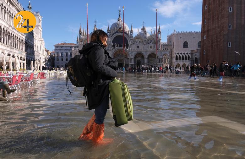 بدنبال بارش شدید باران‌های فصلی در ونیز ایتالیا معابر و خیابان‌های این جزیره غرق در آب شد. وِنیز شهری بدون خودرو است و رفت‌وآمد در درون آن با قایق انجام می‌شود. در تصاویر روز عکس‌هایی از بارش سیل‌آسا در ونیز را ببینید.