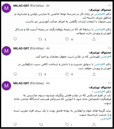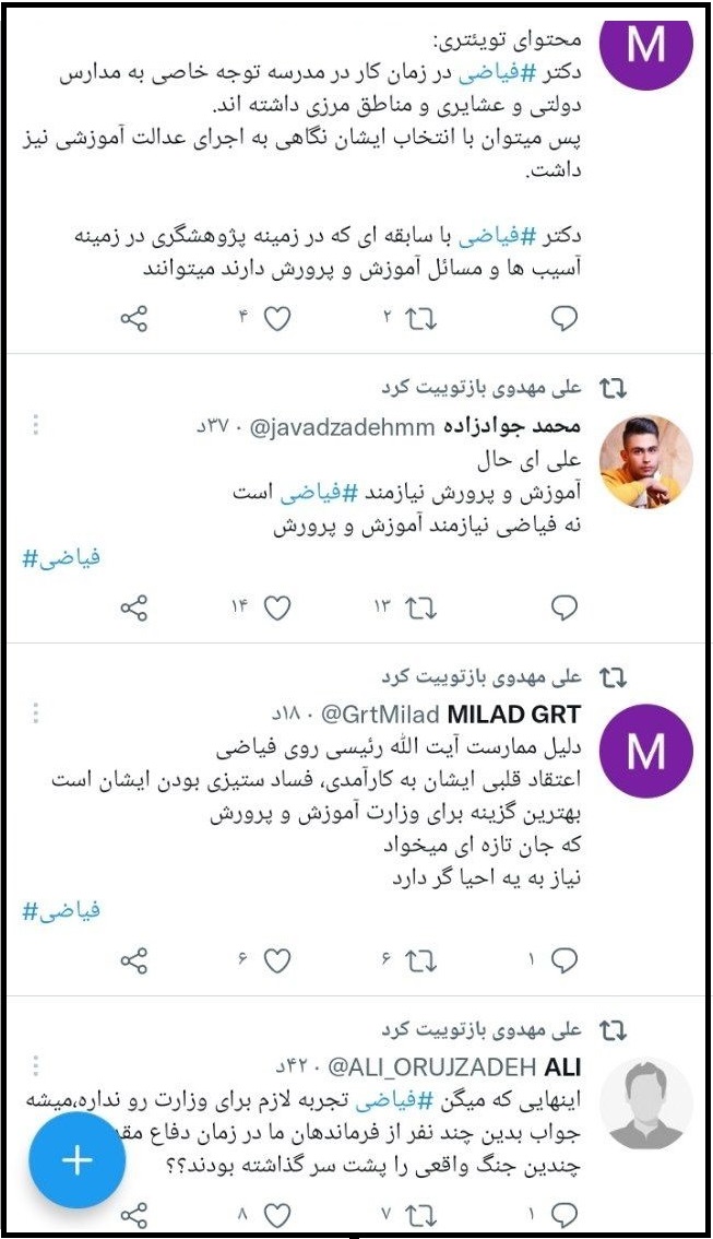 در تمام این توییتها کلمه «محتوای توییتری» دیده میشد و در برخی موارد این توییتها توسط اکانتهایی منتشر شد که به تازگی راهاندازی شده بودند. این موضوع بازتاب بسیاری در شبکههای اجتماعی داشت و برخی کاربران معتقد بودند به وزیری که از همین ابتدا با چنین روشی قرار است خود را اثبات کند، چگونه میتوان اعتماد کرد.