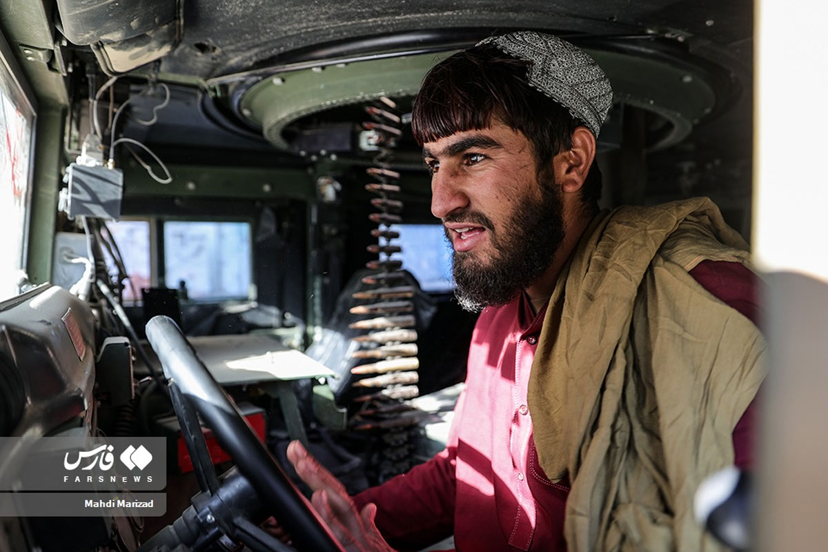 یک عضو طالبان در حال راندن ماشین نظامی در ولایت پنجشیر