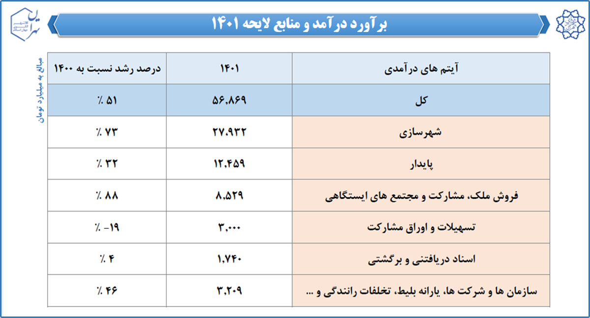 افزایش ۷۳ درصدی در حالی در بودجه ۱۴۰۱ پیش‌بینی شده که افزایش ۶۰ درصدی درآمد‌های حوزه شهرسازی در بودجه ۱۴۰۰ نسبت به سال گذشته آن محقق نشد و شهرداری لایحه کاهش سقف بودجه را به صحن شورا ارائه کرد. مطابق با بررسی‌ها سال ۱۳۹۹ بودجه حوزه شهرسازی ۱۲ هزار و ۵۰۰ میلیارد تومان بود و سال ۱۴۰۰ با افزایش ۶۰ درصدی به ۲۰ هزار میلیارد تومان رسید که امکان تحقق آن وجود نداشت و به همین خاطر در اصلاحیه به ۱۶ هزار و ۵۰۰ میلیارد تومان کاهش پیدا کرد. حالا زاکانی در بودجه ۱۴۰۱ درآمد ۲۸ هزار میلیارد تومانی برای این حوزه پیش‌بینی کرده است! موضوعی که به گفته برخی کارشناسان یا از روی بی‌تجربگی مطرح شده یا قرار است تراکم‌فروشی خلاف طی سال آینده شدت بگیرد.