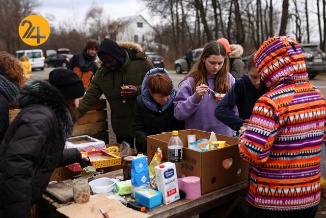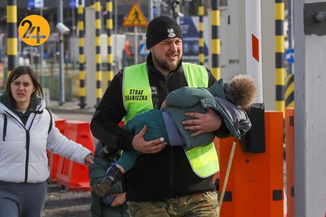 در گذرگاه‌های مرزی در لهستان، اوکراینی‌ها با پای پیاده و با ماشین و یا قطار برخی با حیوانات خانگی خود - وارد شده و مقامات لهستانی و داوطلبان با ارائه غذا و نوشیدنی‌های گرم از آنها استقبال کردند.