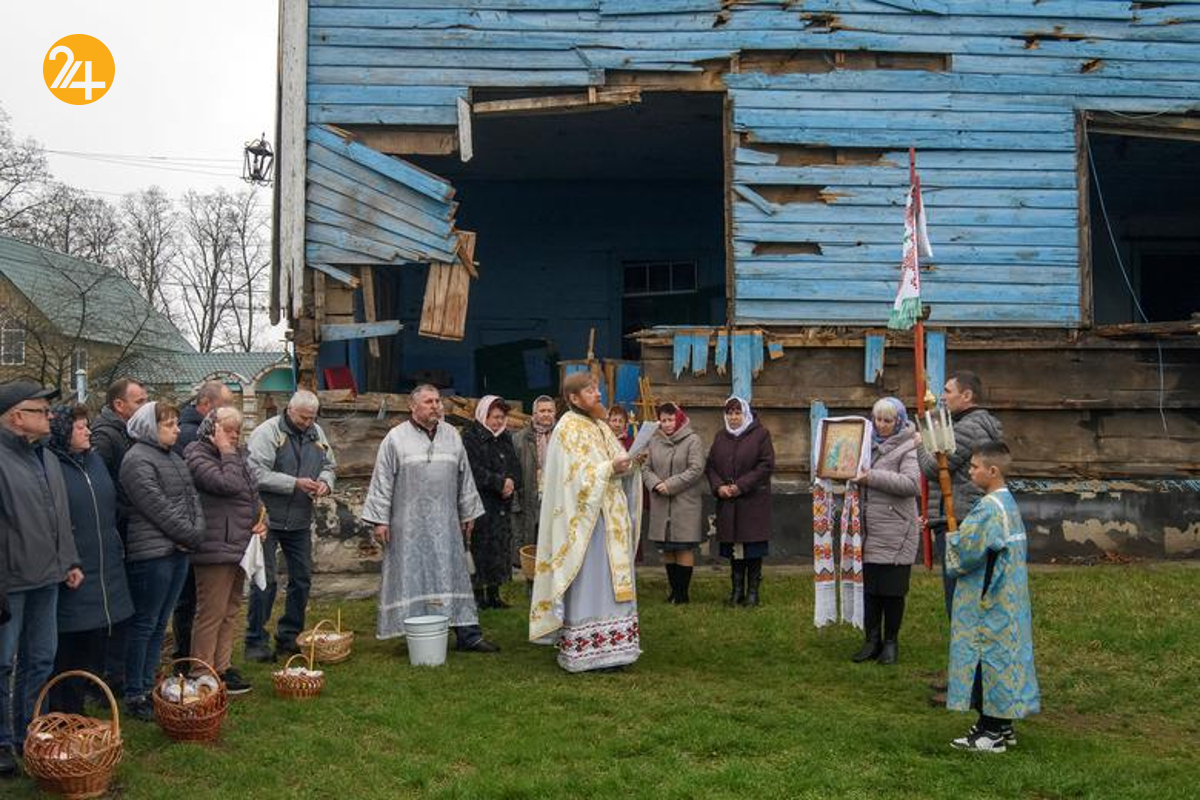 روز ۲۴ آوریل ۲۰۲۲ برگزاری مراسم عید پاک توسط یک کشیش در کنار کلیسایی در منطقه کی یف که توسط روس ها بمباران شده است
