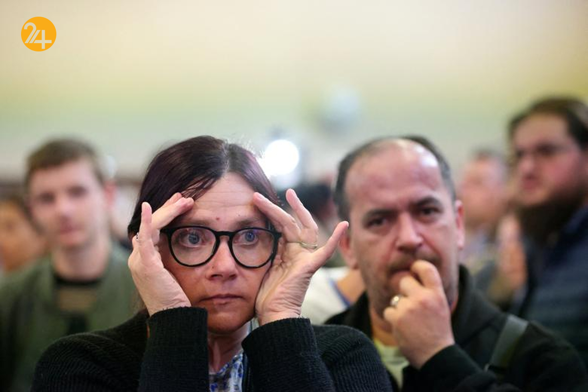 روز ۲۴ آوریل واکنش حامیان مارین لوپن، کاندیدای حزب راست افراطی جامعه ملی فرانسه برای انتخابات ریاست جمهوری ۲۰۲۲ فرانسه، پس از نتایجدور دوم انتخابات ریاست جمهوری فرانسه در سال ۲۰۲۲، در حالی که در هنین بومونت فرانسه تجمع کردند.