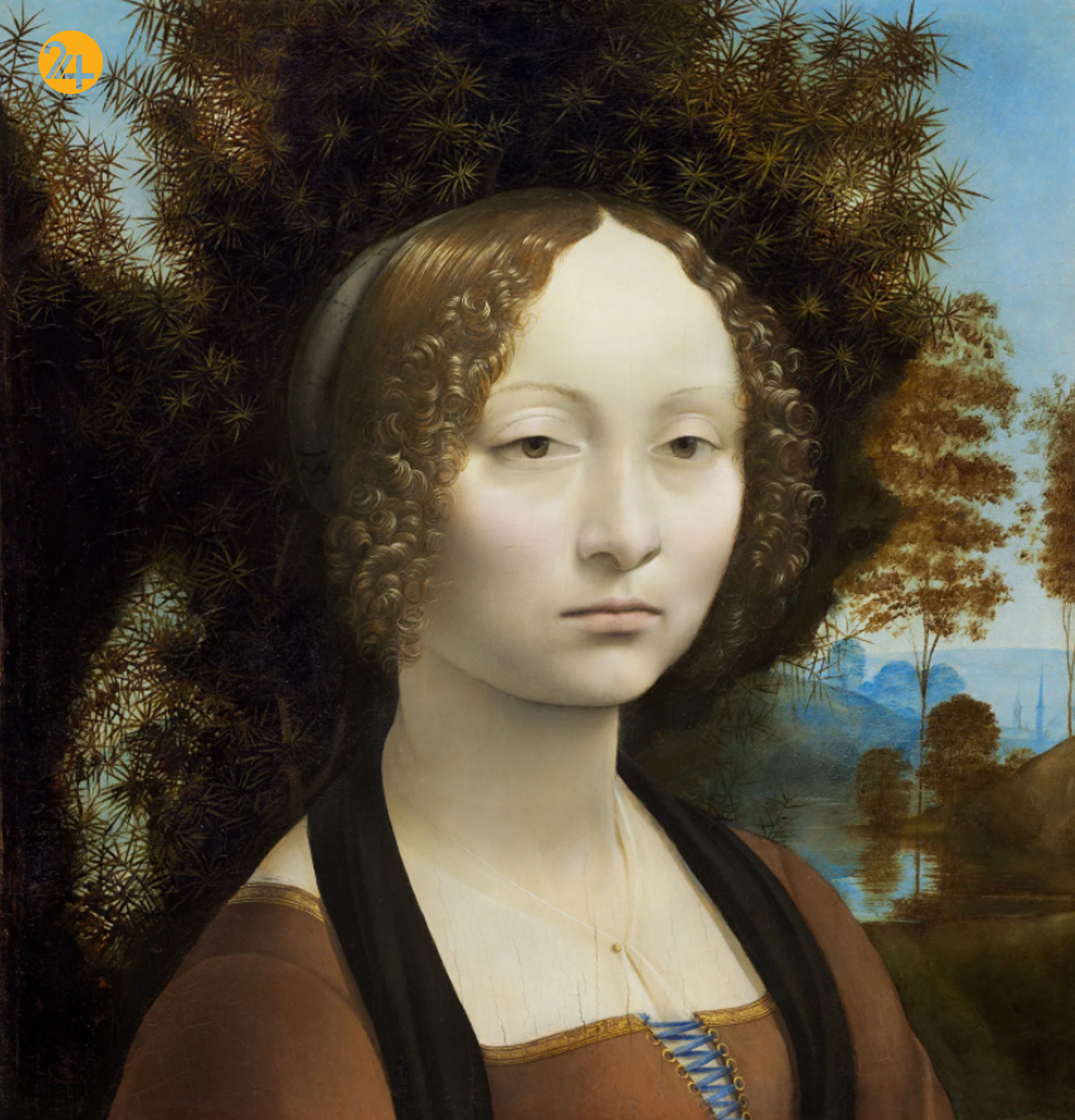 جینورا د بنچی (۷۸/۱۴۷۴ میلادی) او در این نقاشی بهجای کشیدن چهرهی نیمرخ که آن زمان مرسوم بود، تصویر زن جوان را در پوزیشن سهچهارم به تصویر کشید؛