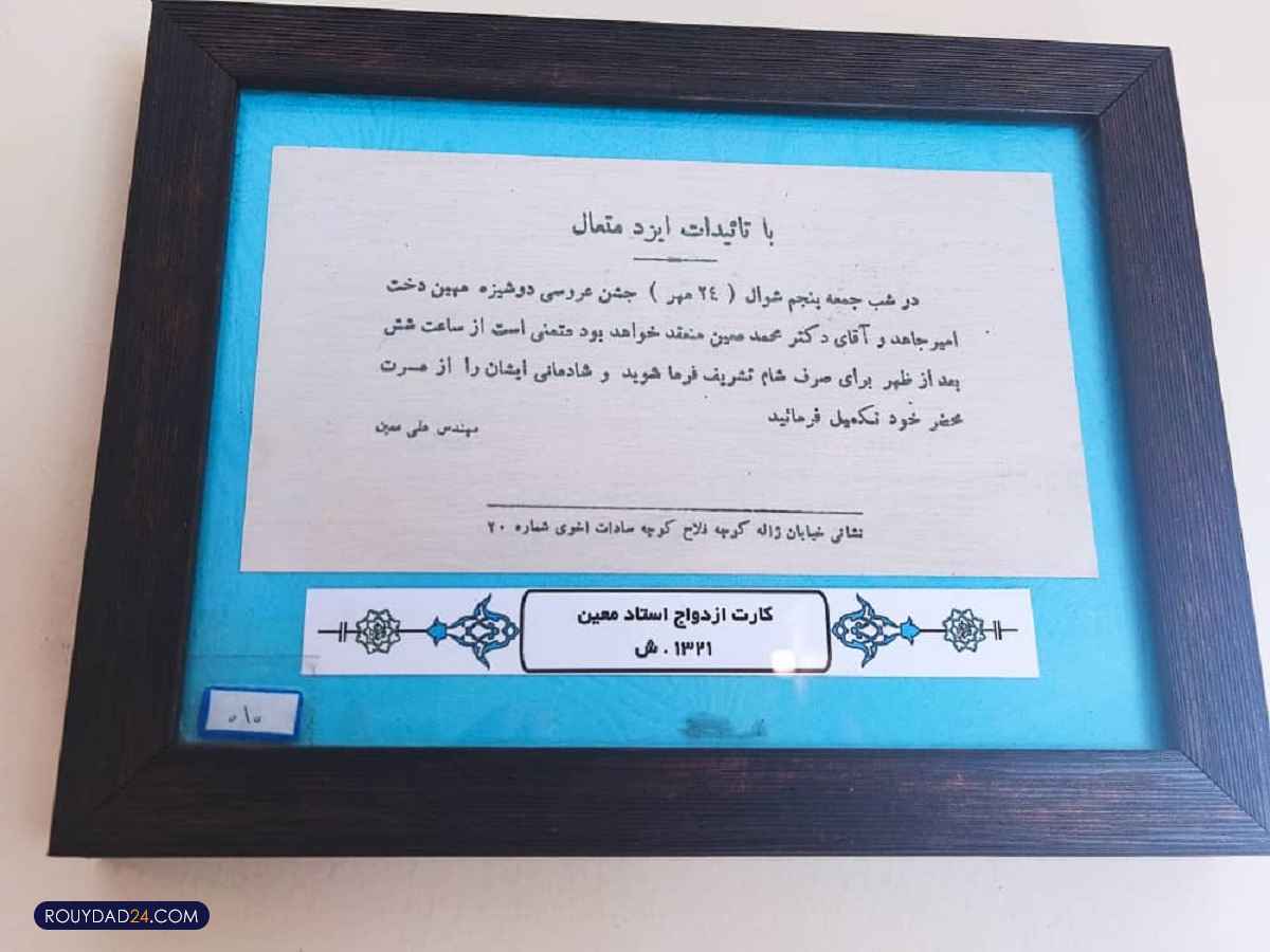 خانهی استاد معین، اینک پابرجاست و تبدیل به موزهای تماشایی شده است. قدری که از اتوبان شلوغ امام علی، در حوالی چهارصد دستگاه، به سمت غرب فاصله میگیرید، با پارکی جمعوجور، اما باصفا روبهرو میشوید و پس از گذشتن از آن، تابلوهای راهنما، به سمت خانه موزهی دکتر معین هدایتتان خواهد کرد. در این خانه اهل فرهنگ و احیاناً گروههای فیلمبرداری (بخش عمدهی سریال «شهرزاد» در خانه موزهی دکتر معین ضبط شده است) را خواهید دید.