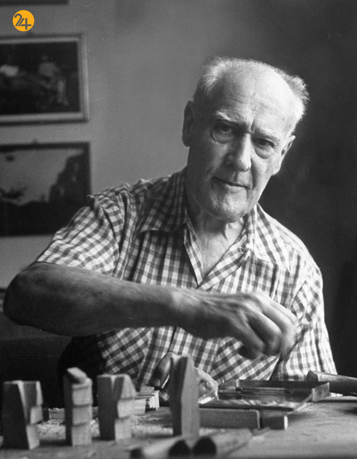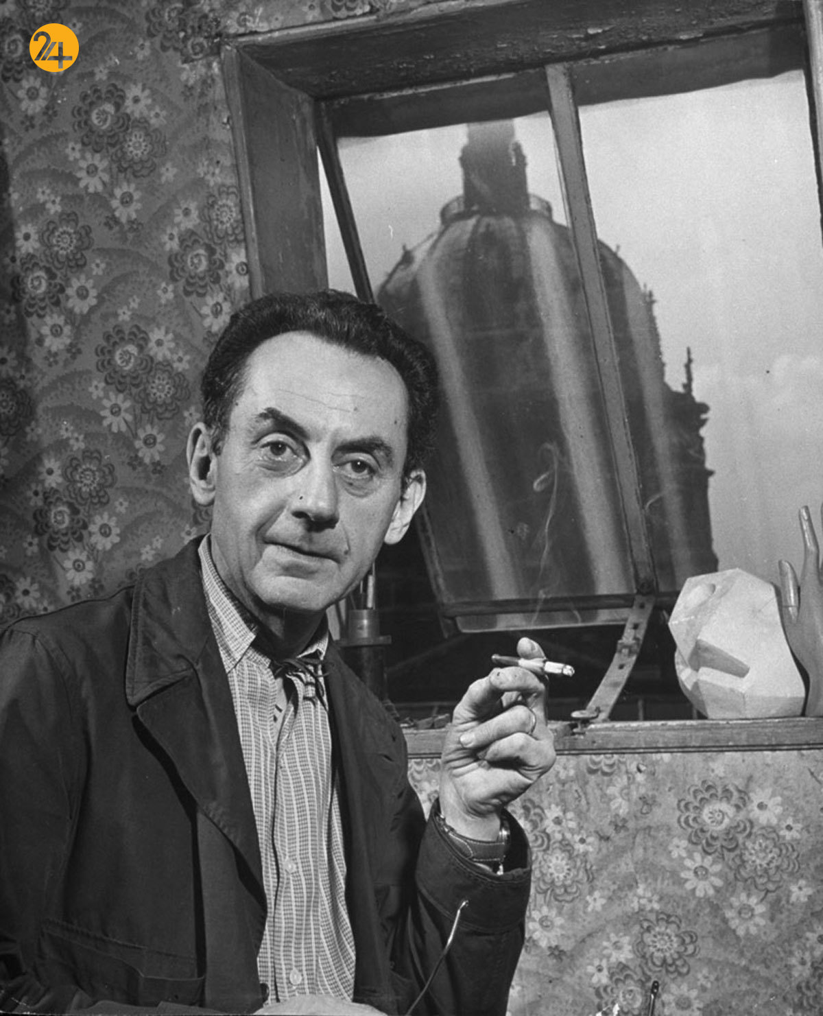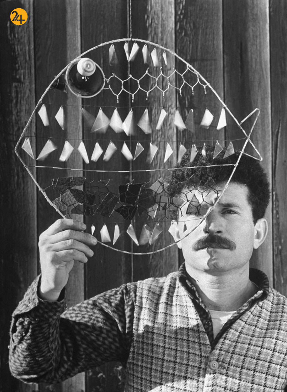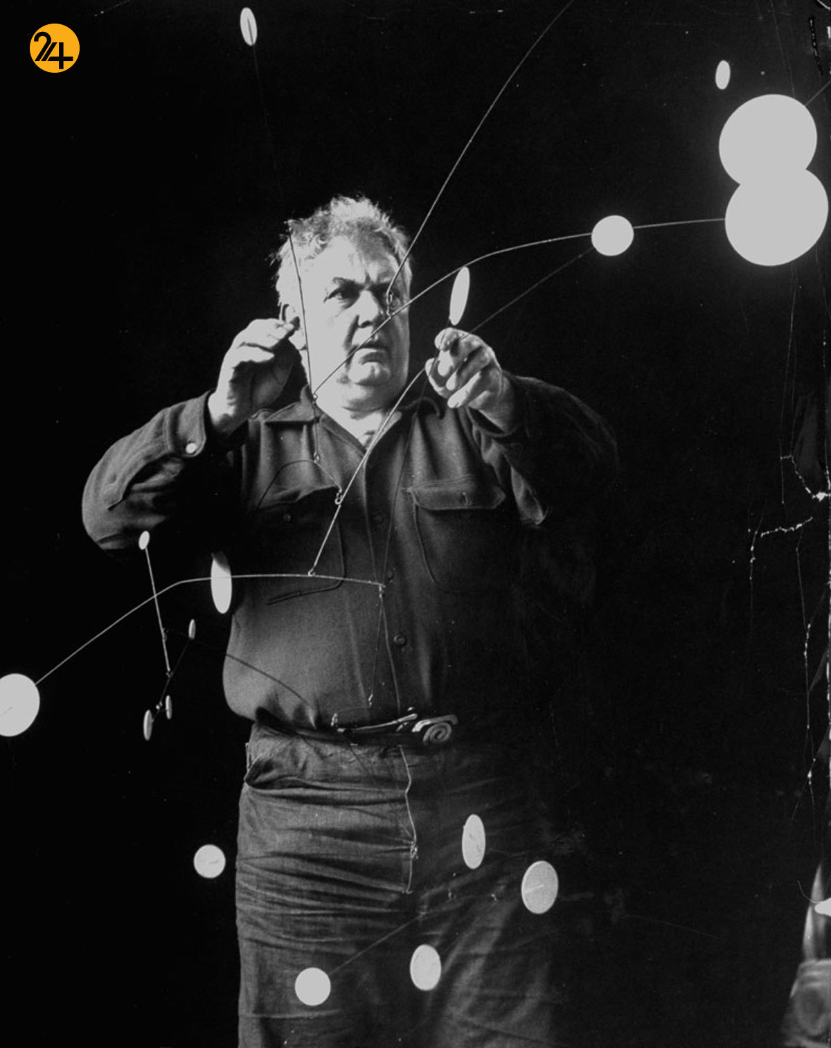الکساندر کالدر مجسمهساز آمریکایی در سال ۱۹۵۲ میلادی