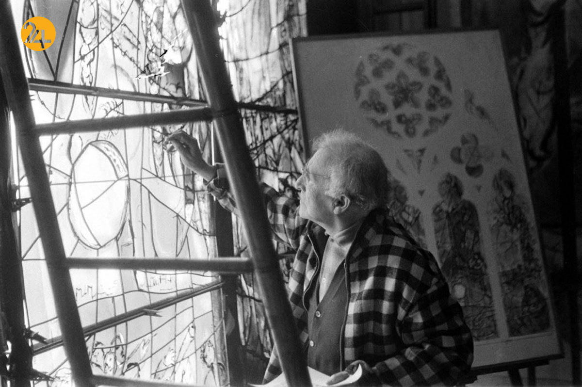 مارک شاگال نقاش فرانسوی روسی که از پیشگامان سبک سورئالیسم بود.