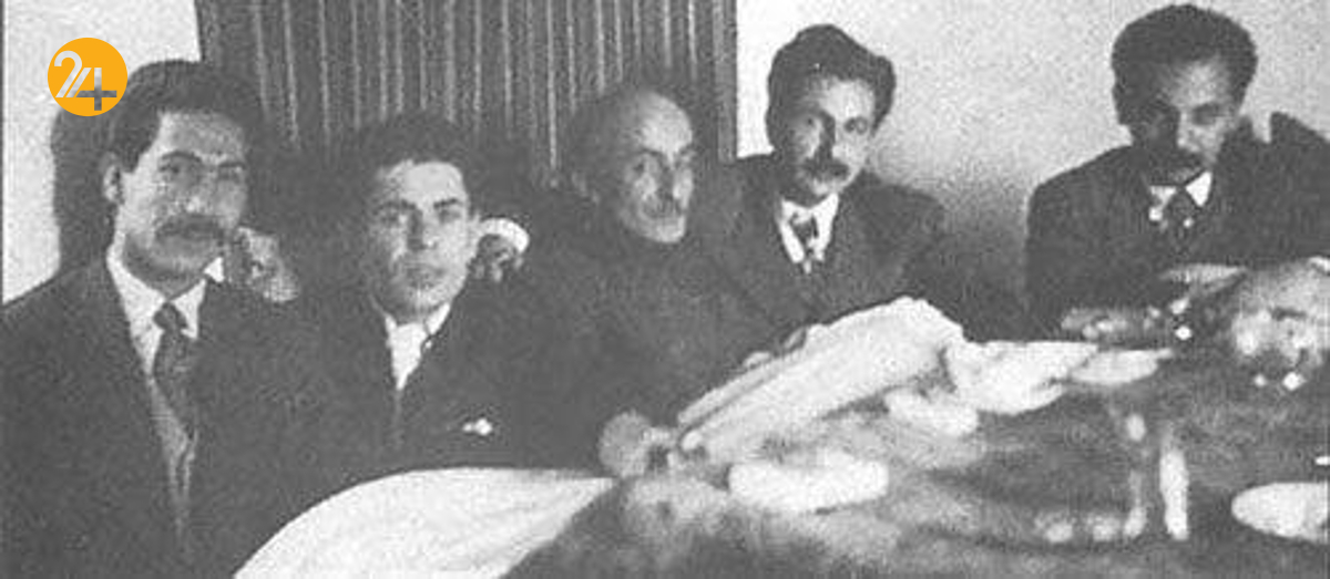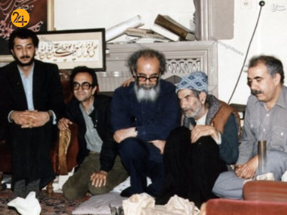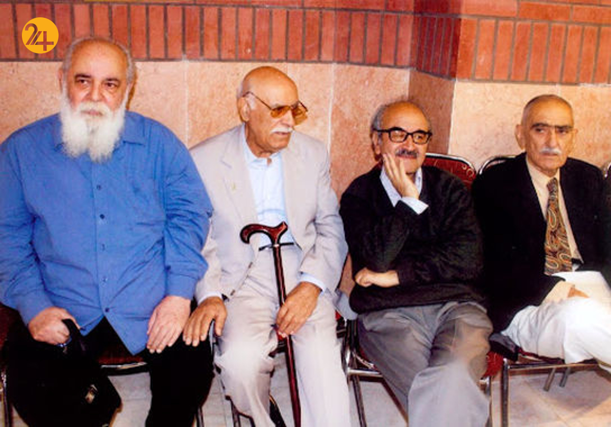 امیر هوشنگ ابتهاج بهمراه رفیق شفیقش شهریار در کنار شفیعی کدکنی و دیگر دوستان