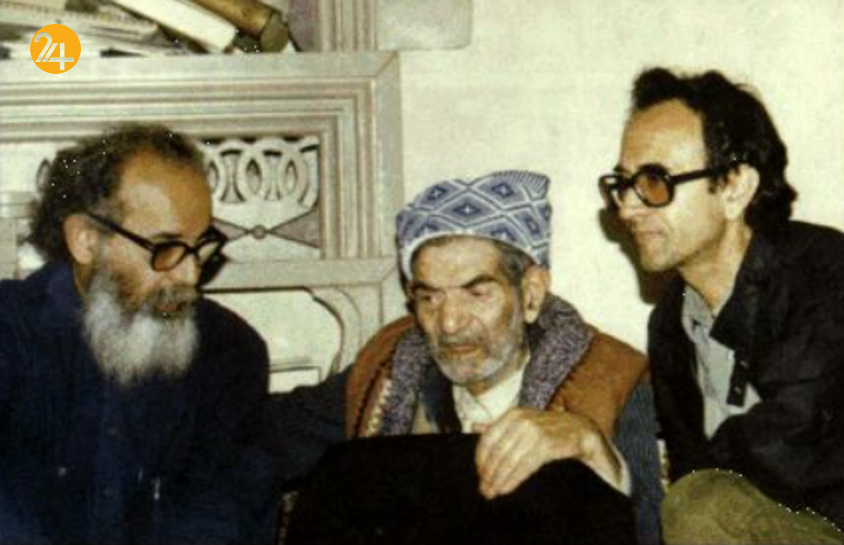 سایه مهدی اخوان ثالث بهمراه شفیعی کدکنی در منزل وی در تهران