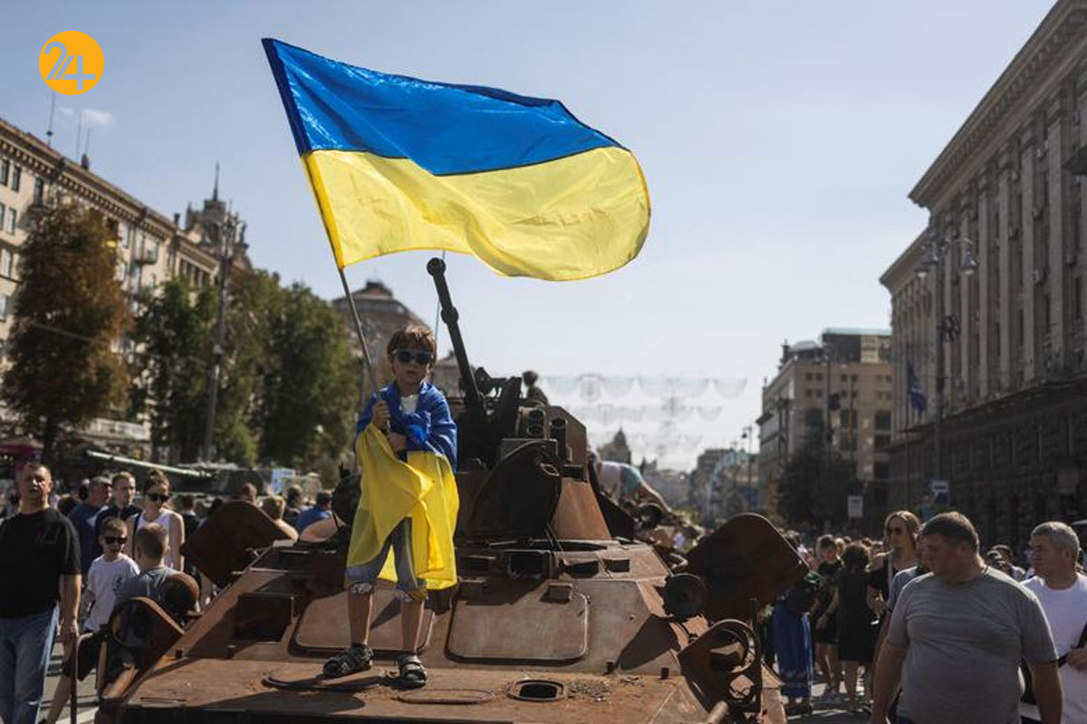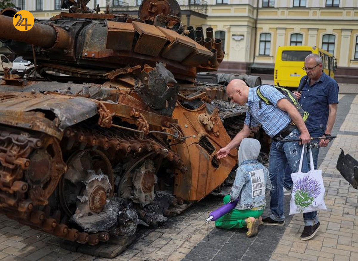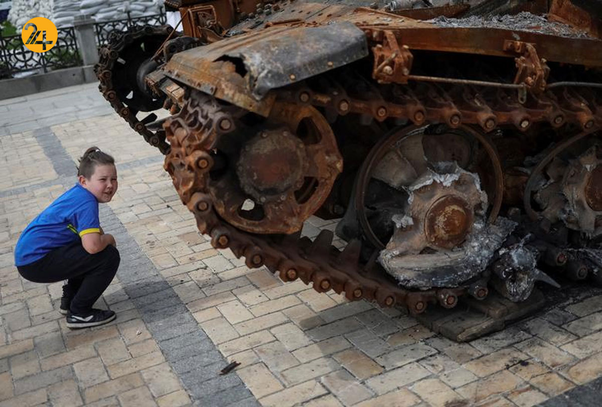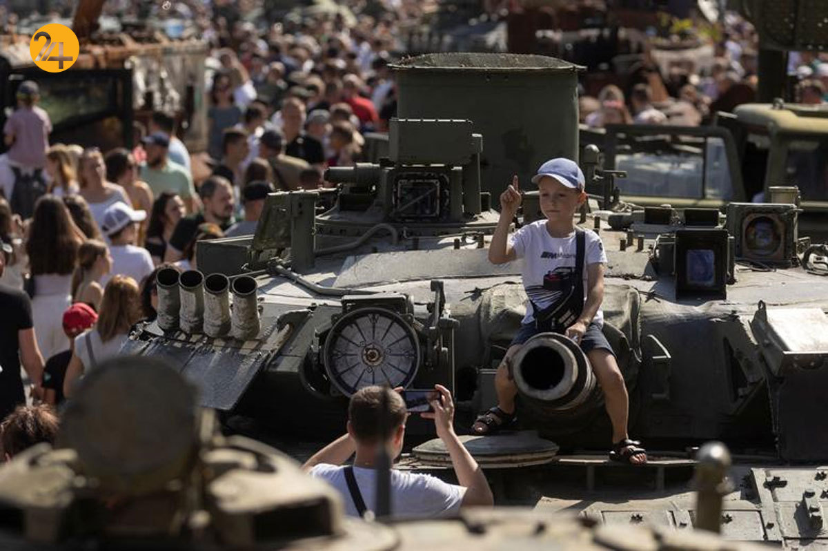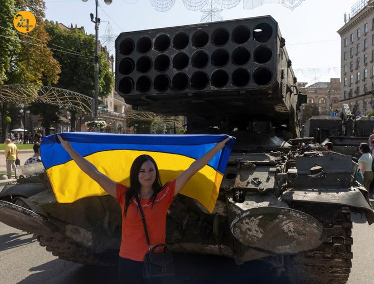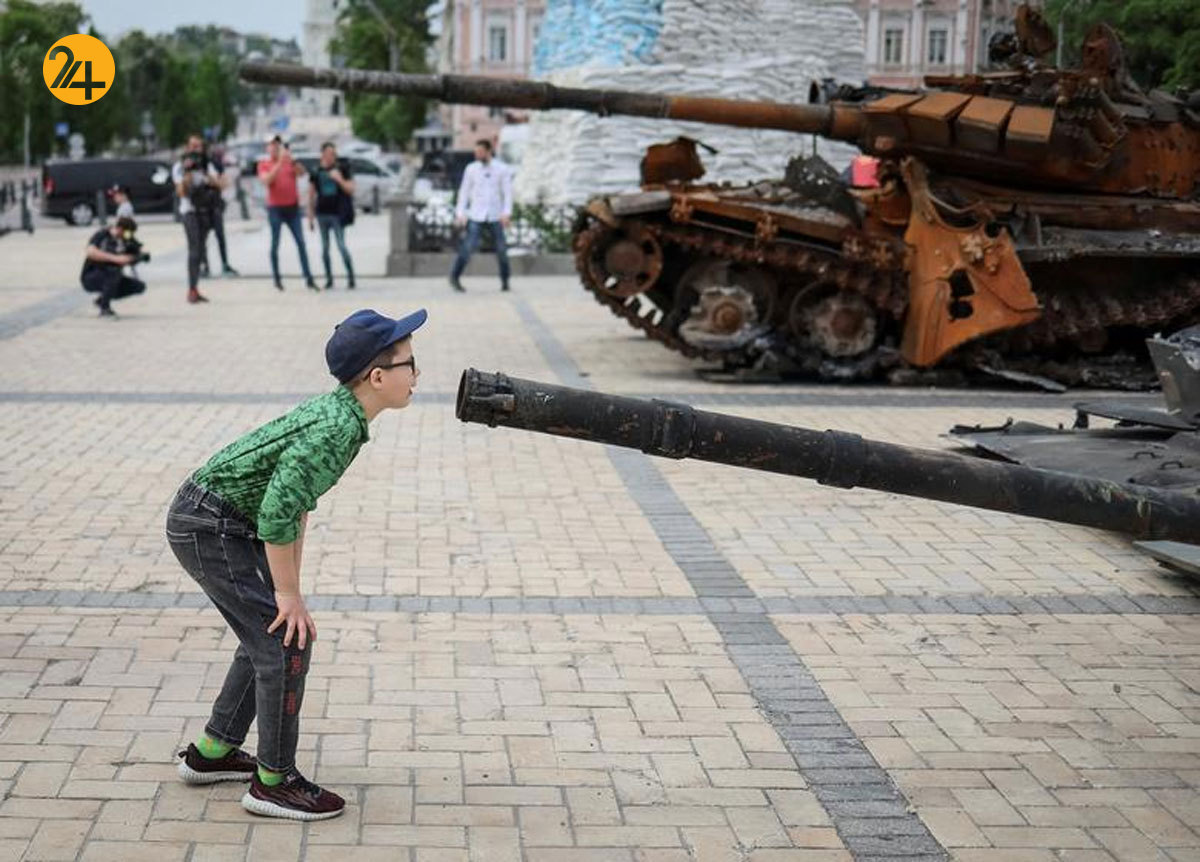 در حالیکه تنش میان روسیه و اوکراین افزایش یافته صدها سرباز اوکراینی برای نشان دادن توان نظامی خود تانکهای سوخته روسیه که در جنگ با اوکراین در خاک این کشور منهدم شده بود را در میدان استقلال کییف به نمایش گذاشتند.