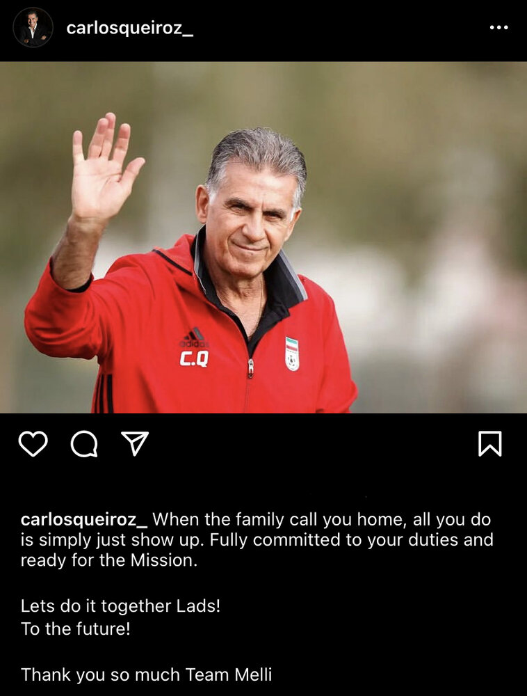رویداد۲۴کارلوس کی روش با انتشار پستی در صفحه اینستاگرامش به برگشتنش به تیم ملی اران واکنش نشان داد.