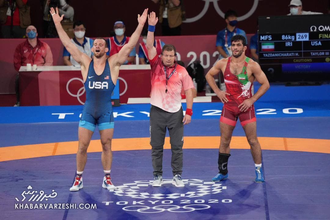 یزدانی که از سوی اتحادیه جهانی کشتی لقب "پادشاه" را دارد در تایم اول با نتیجه ۲ بر یک شکست خورد. در تایم دوم برتری با تیلور بود و او این مسابقه را ۷ بر یک برد تا طلای دیگری برای کشورش کسب کند. یزدانی در این مسابقات به مدال نقره رسید.