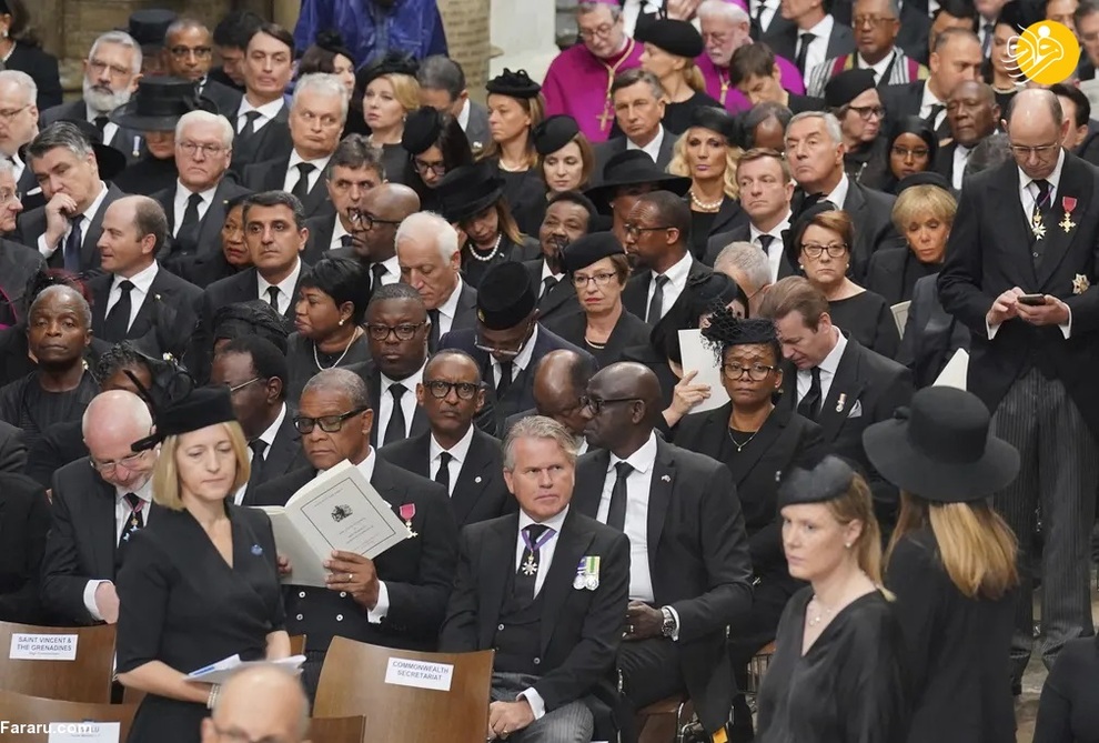 سران کشورها، نخست وزیران، رؤسای جمهور و مقامات بلندپایه برخی کشور‌ها در مراسم تشییع جنازه ملکه الیزابت دوم در کلیسای وست‌مینستر شرکت کردند.