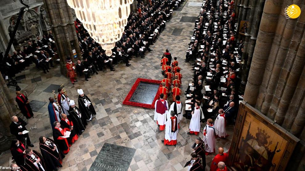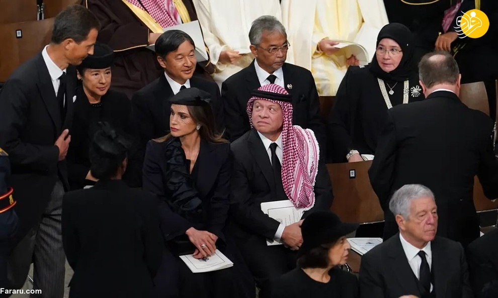 رویداد۲۴ در مراسم تشییع ملکه انگلیس سرود‌ها و دعا‌های مذهبی مورد علاقه ملکه اجرا شد در حالی‌که تابوت روی سکویی در برابر محراب قرار داده شد. برخی از رهبران خاورمیانه از جمله پادشاه اردن در مراسم خاکسپاری ملکه الیزابت دوم حضور دارند.