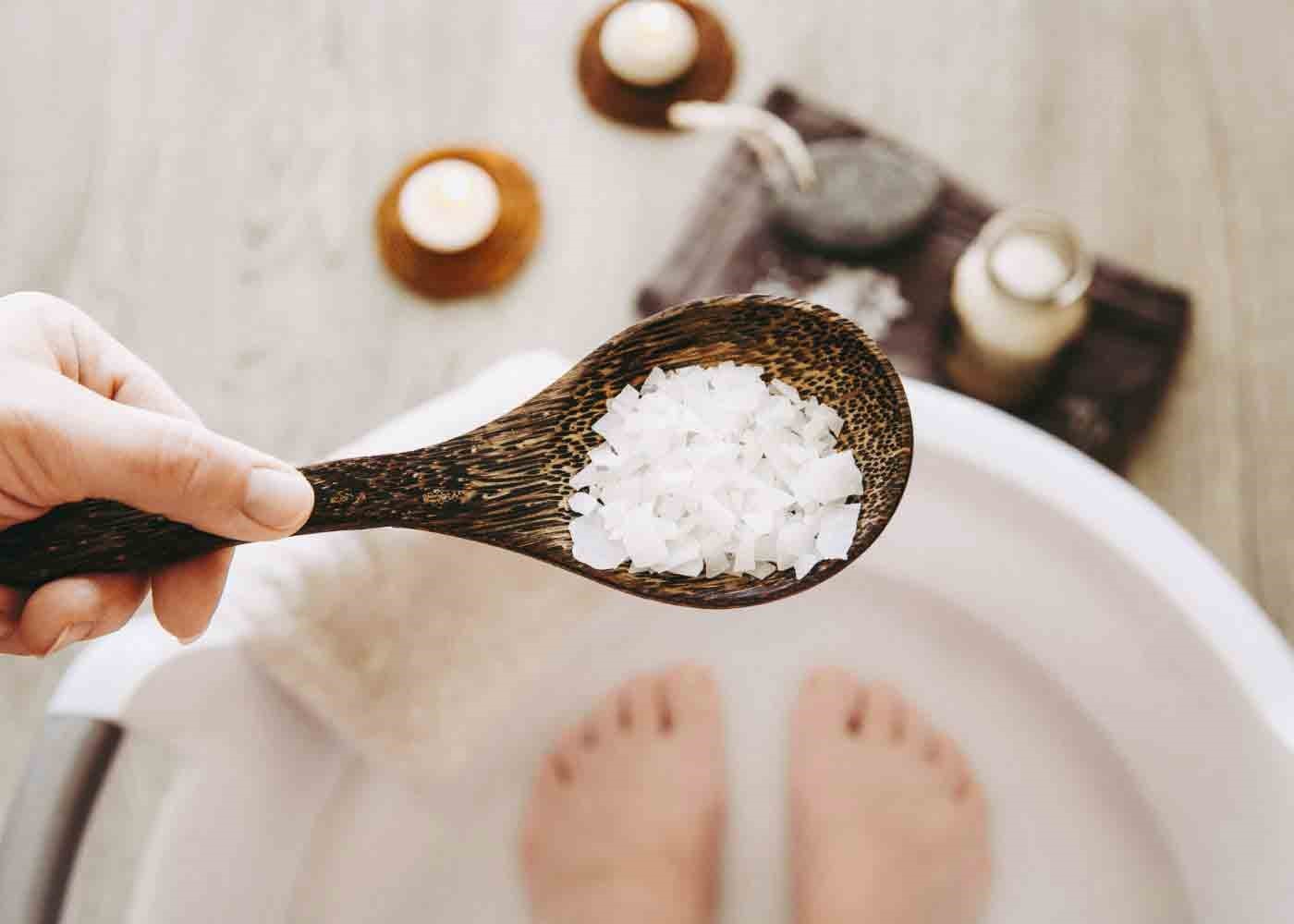 - پاهای خود را دوبار در هفته به مدت 15 دقیقه در نمک سولفات قرار دهید.