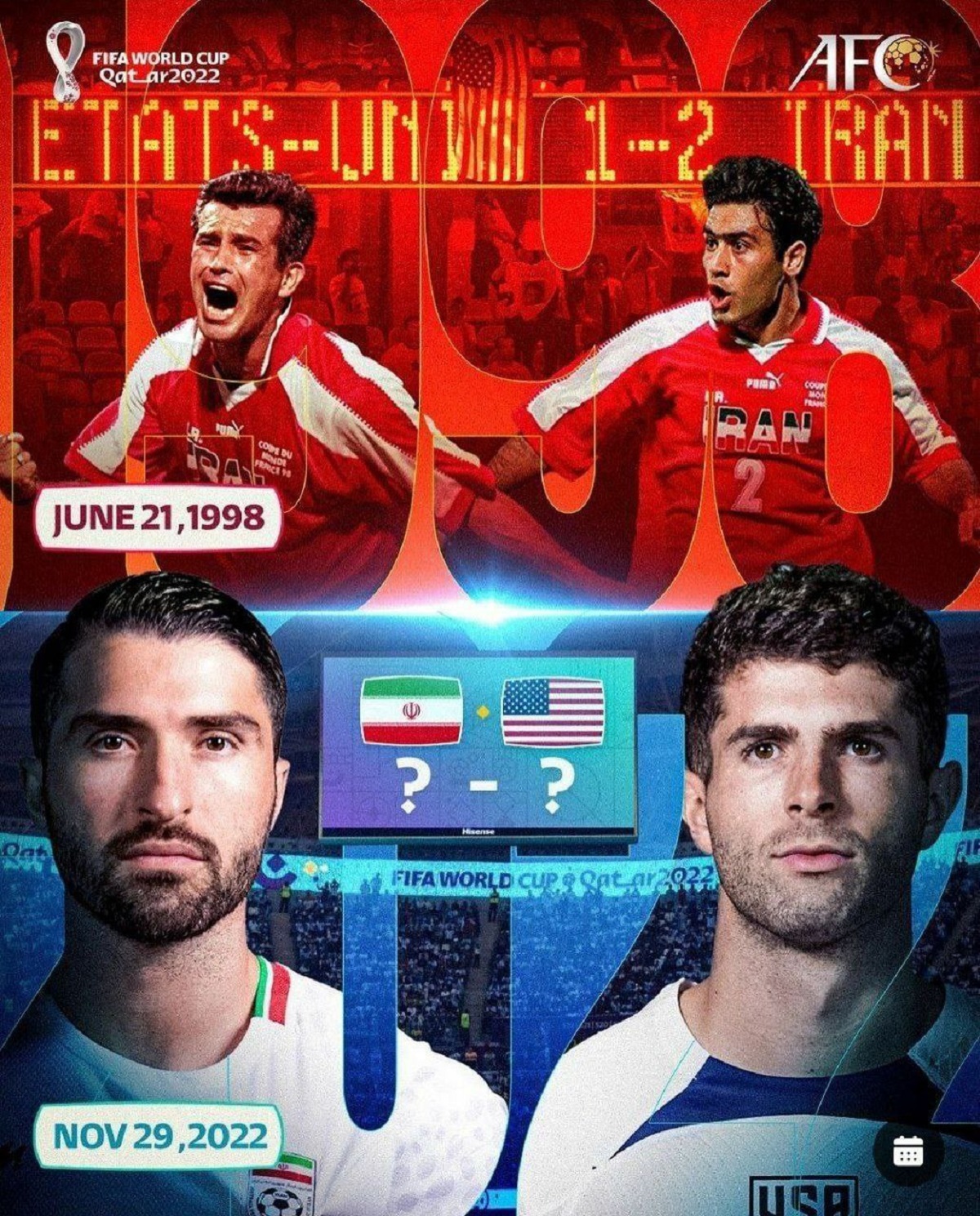 فدراسیون فوتبال آسیا پوستر خود برای بازی امشب ایران و آمریکا در جام جهانی قطر را با حضور مهدی مهدوی کیا و حمید استیلی منتشر کرد.