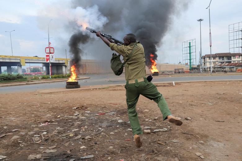 پرتاب گاز اشکآور توسط پلیس کنیا به سمت معترضان به نتیجه انتخابات ریاست جمهوری