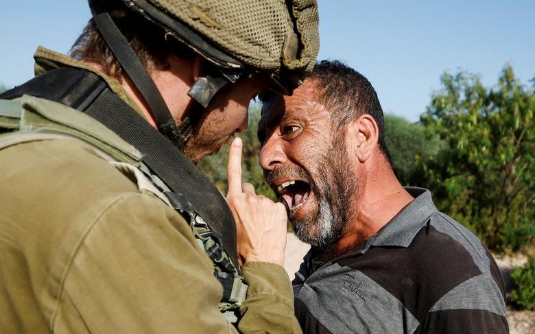درگیری یک معترض فلسطینی با یک سرباز اسرائیلی در جریان اعتراض به شهرک سازی اسرائیل