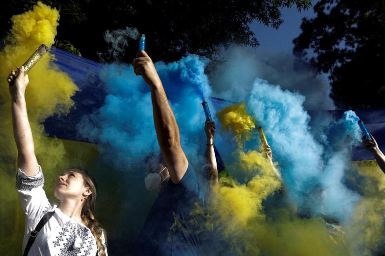 اعتراض مردم اوکراین مقابل سفارت روسیه