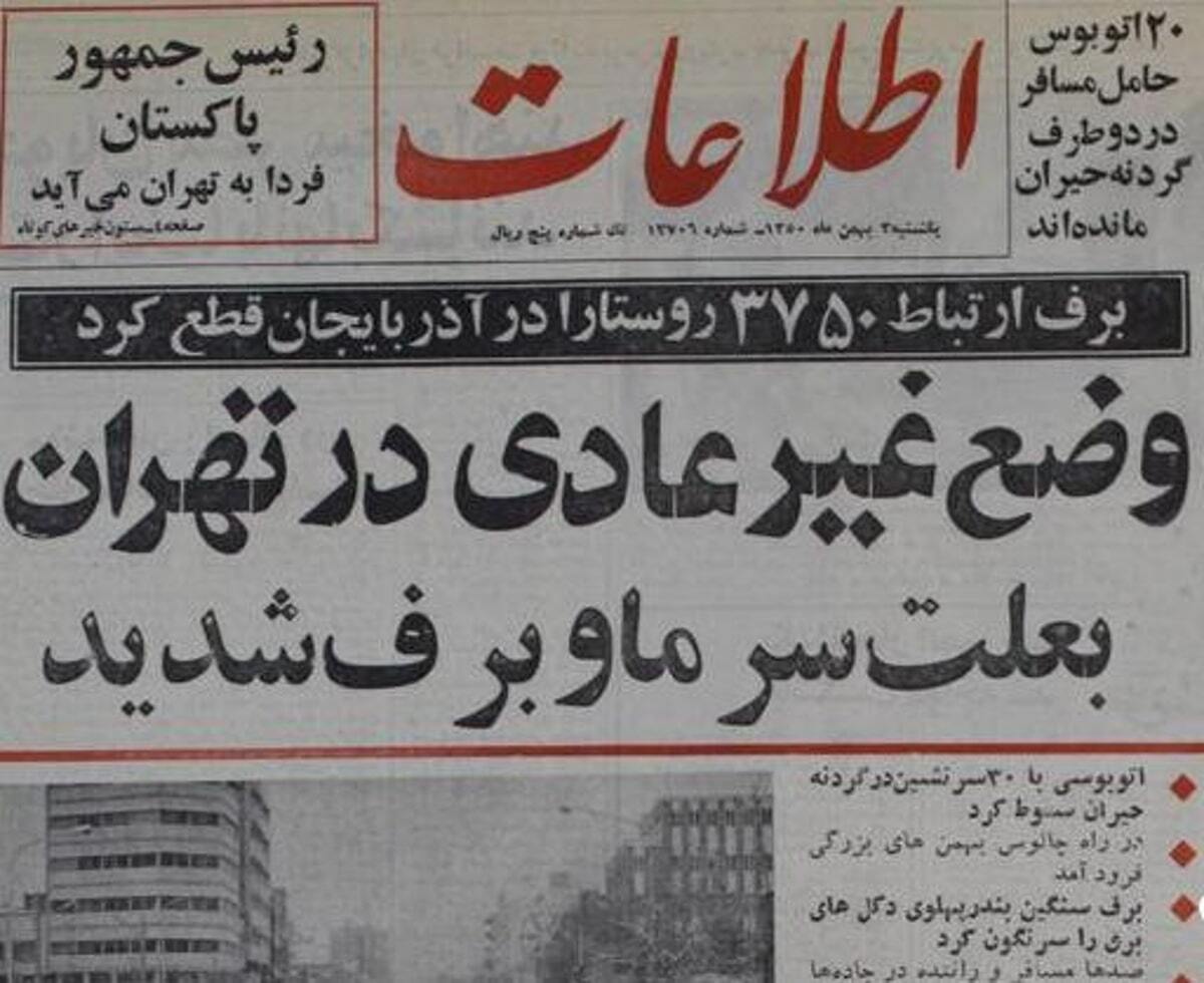ایران در رکوردهای گینس بعنوان پرتلفاتترین سرما و بوران در تاریخ یاد شد. در تصاویر روز عکسهایی از روزنامههای سال ۱۳۵۰ را در اوج برف و کولاک ببینید.