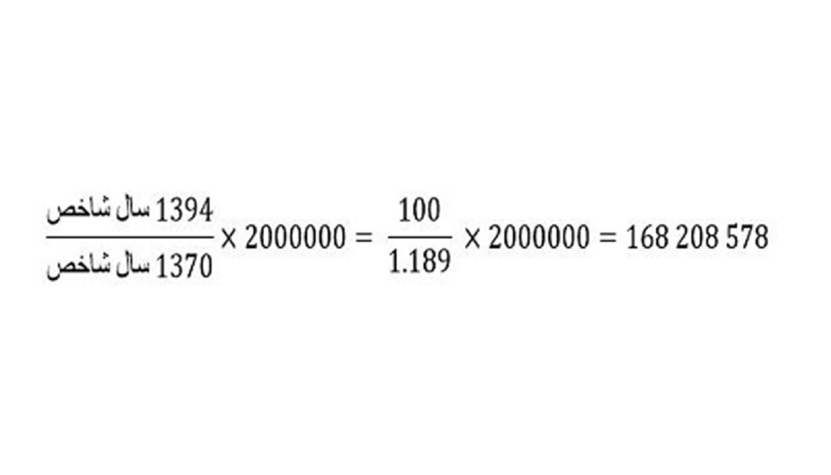 مثال زیر، نحوه و فرمول محاسبه مهریه زن را بهروشنی نشان میدهد: