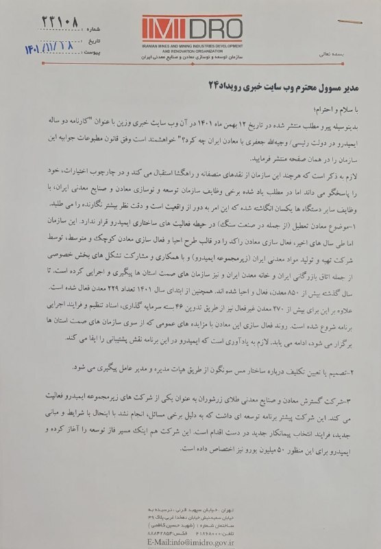 جوابیه ایمیدرو به گزارش رویداد۲۴