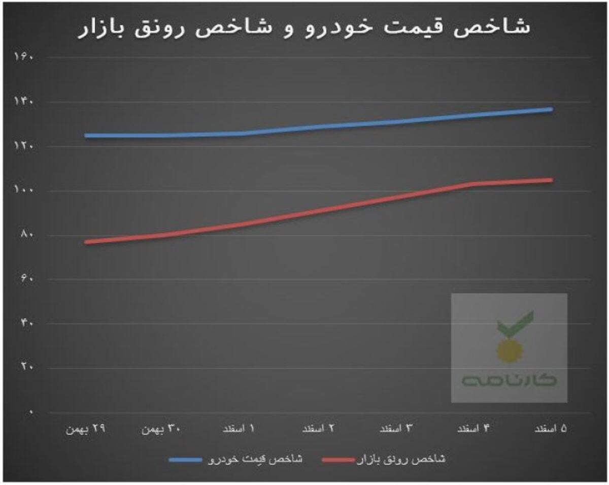 روزهای ابتدایی اسفند با رشد میزان عرضه خودرو در بازار آزاد نیز همراه بود؛ در واقع رشد قابلتوجه قیمت، تاثیری روی کاهش شاخص رونق و یا کاهش میزان تمایل فروشندگان نسبت عرضه خودرو در بازار آزاد نداشت.