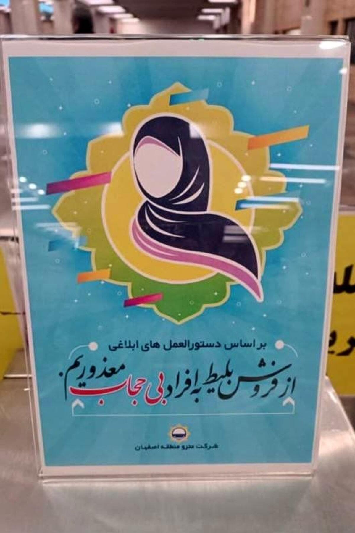 در ورودی ایستگاه های مترو در شهر اصفهان بنری با موضوع ممنوعیت فروش بلیط مترو برای بانوان بی حجاب قرار گرفته است که بالای آن نوشته شده: حسب دستورالعمل های ابلاغی.