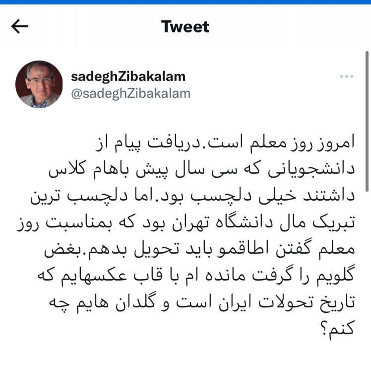 توییت صادق زیباکلام در روز معلم/ اتاقم را در دانشگاه گرفتند
