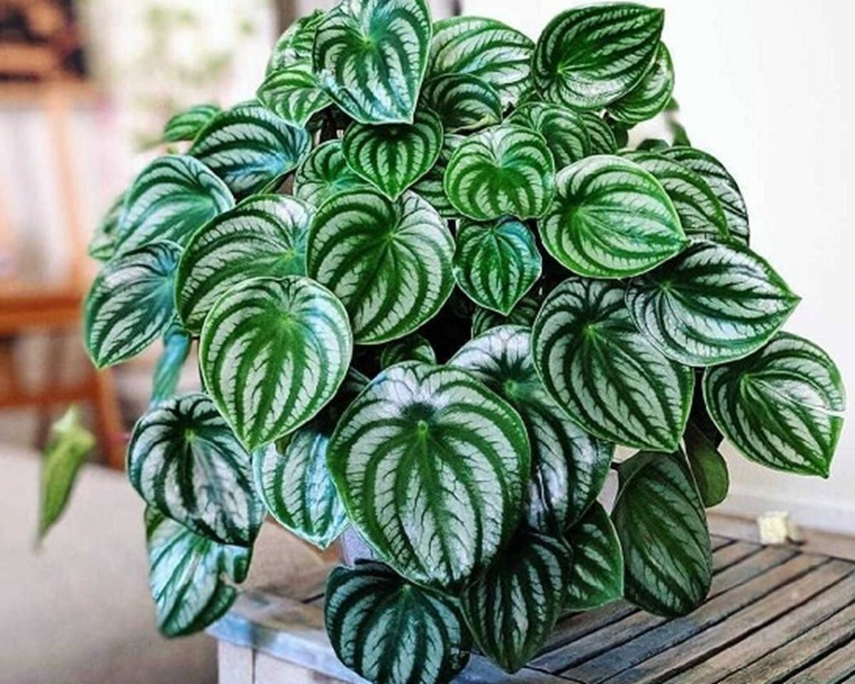 اگر بهدنبال یک مجسمه زنده برای میز کار یا روی قفسهها هستید، پپرومیا هندوانهای با برگهای گرد و بزرگ خود میتواند این نقش را به خوبی برای شما ایفا کند! برگهای این گیاه از دو رنگ سبز روشن و سبز تیره تشکیل شدهاند و به حالت مارپیچی در درون هم قرار گرفتهاند. همین موضوع باعث شده تا این گیاه به یک اثر هنری زنده تبدیل شود.