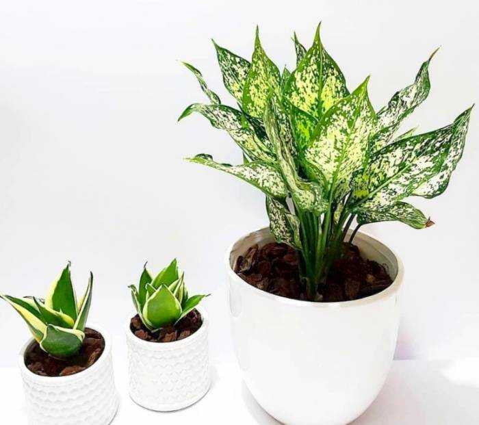 با کمک آگلونما، محیط خود را به بهترین نحو تازه کرده و از برگهای بیضی مانند آن که در دو رنگ مختلف رشد میکنند و به سمت پایین خمیده میشوند لذت ببرید. برگهای این گیاه بهرنگ سبز روشن هستند و با رگههای سبز تیره تزئین شدهاند. گونههای مختلف این گیاه رنگهای دیگری نیز دارند، برای مثال نوع “سرنا” مرکزی صورتی رنگ داشته که با رگههای بنفش همراه شده است.
