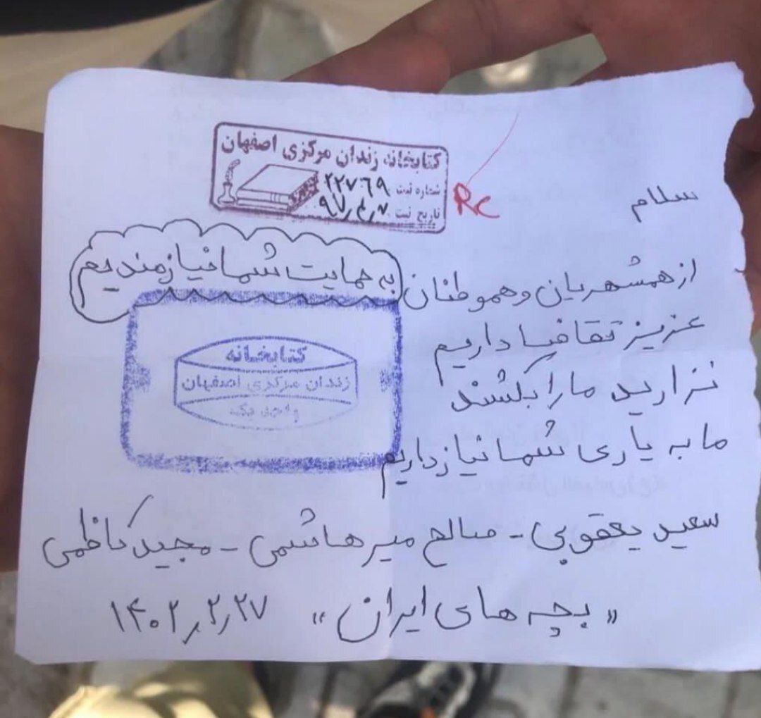 به جز این فایل صوتی، نامهای در فضای مجازی منتشر شد که در آن امضای یعقوبی، میرهاشمی و کاظمی دیده میشود. آنها در این نامه خطاب به مردم خواستهاند که نگذارند اعدام شوند زیرا بیگناه هستند. تاریخ امضای این نامه دو روز قبل از اعدام آنهاست.