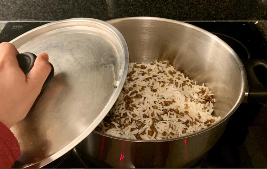صبور باش. پختن عدس پلو زمان می برد اما نتیجه نهایی ارزشش را دارد.