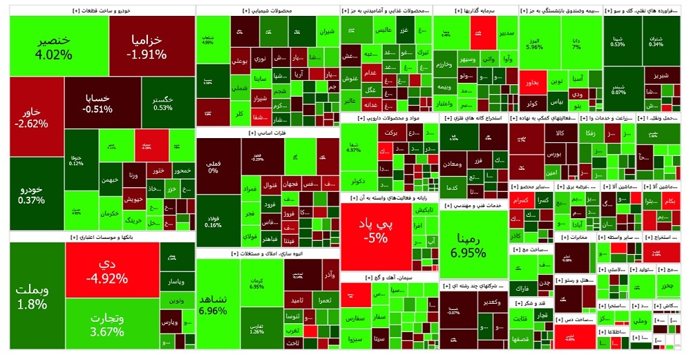 نمای پایانی نقشه بازار بورس ۹ خرداد ۱۴۰۲